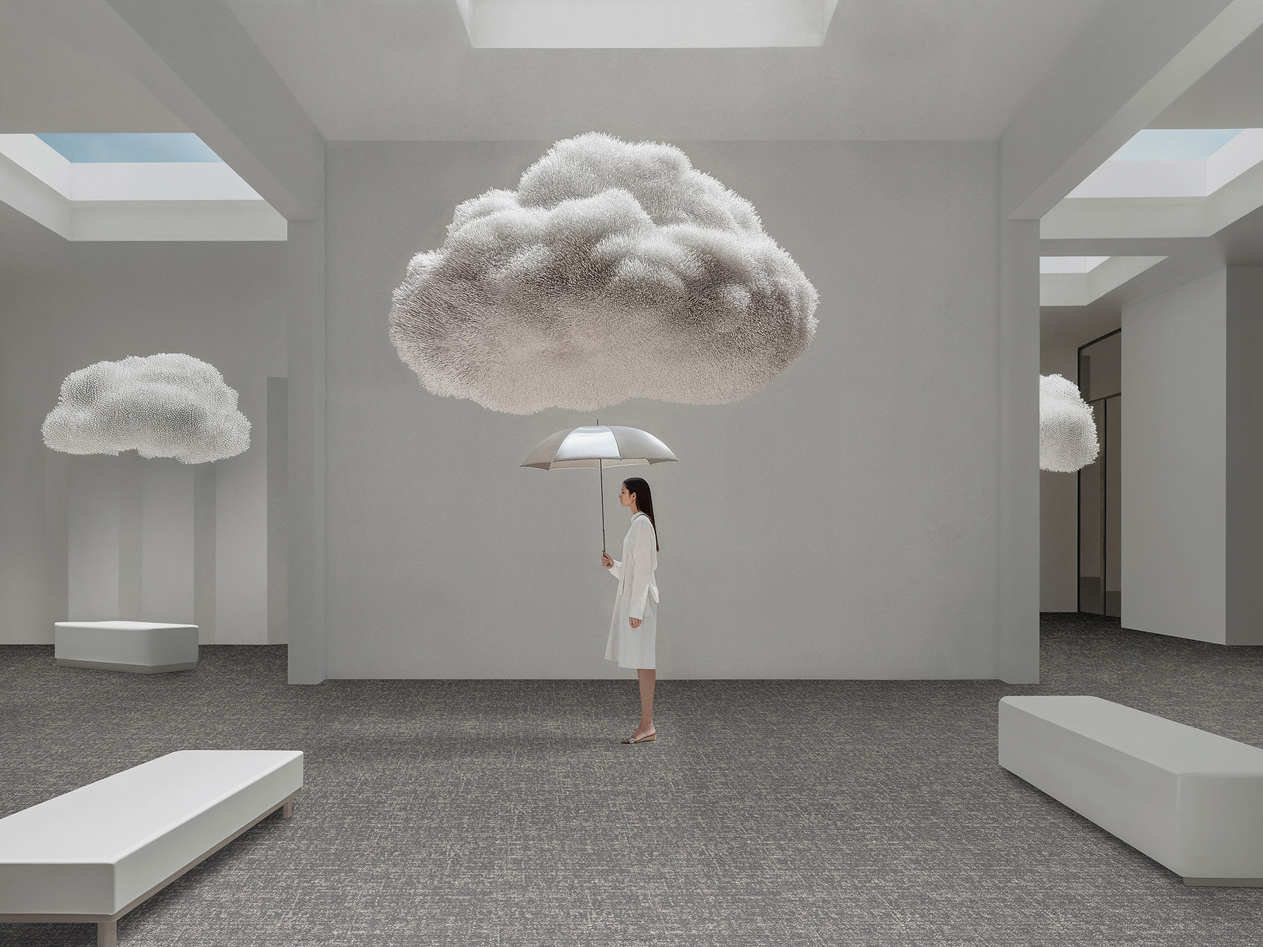 Meanwhile, FLUXDUOO produces an effect resembling a textile landscape: it diffuses naturally throughout the room and creates an ambience as subtle as it is stylish. The organic surface structure is reminiscent of an abstract topography, interspersed with understated color shifts and loops – ideal for zones expressing a perfect balance of clarity and softness.