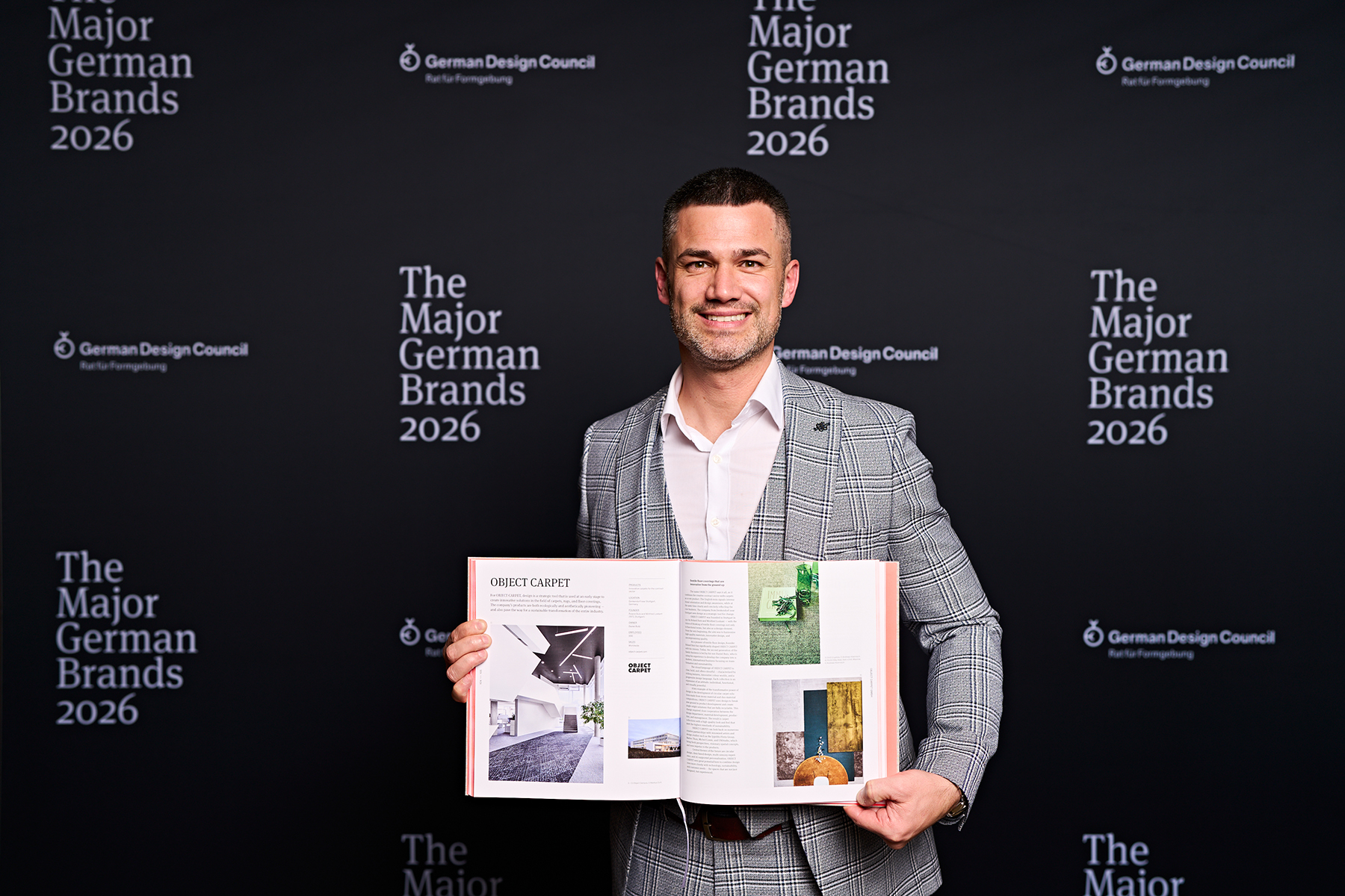 OBJECT CARPET has once again been honoured by the German Design Council as one of the ‘Major German Brands 2026’. With this recognition, the Council acknowledges exceptional German brands that stand out for their design excellence, innovation and entrepreneurial responsibility ‘Made in Germany’. The award thus underlines OBJECT CARPET’s role as a pioneer and innovator in floor architecture, particularly in the field of circular economy.