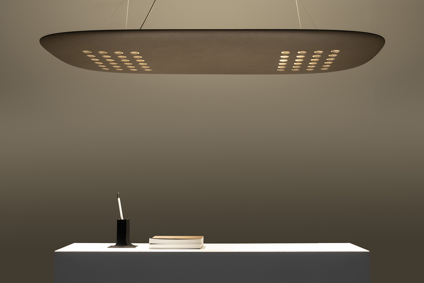 ALE.01 verfügt über eine weiche Form: Unaufdringlich und elegant schwebt die Pendelleuchte im Raum. Ihre organische Ästhetik schafft eine warme, anregende Atmosphäre, die besonders Bürolandschaften aufwertet. Mehrere Einstellungsmöglichkeiten erlauben, das Licht direkt zu steuern und so an die wechselnden Beleuchtungsbedürfnisse im Tagesverlauf anzupassen.