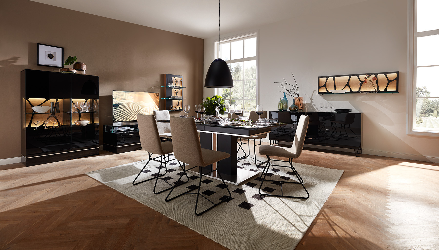 Wohnen heißt, Stimmungen zu gestalten: Genau das macht das ausdrucksstarke LEONARDO LIVING-Wohnprogramm CUBE möglich. Mit klaren Linien, edlen Glasoberflächen und raffinierten Lichtmodi wird jede Einrichtung zur persönlichen Wohlfühlzone. Individuelle Beleuchtung sorgt dabei für das gewisse Etwas: Ob sanftes Warmweiß für entspannte Abende, frisches Grün für belebende Akzente oder ein kräftiges Orange für eine warme Atmosphäre – die flexible RGB-Beleuchtung taucht den Raum jeweils in genau das Licht, das zur Stimmung passt.