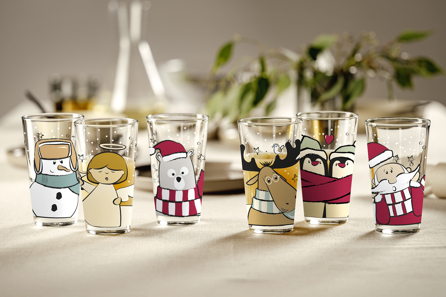 Lebendig zeigen sich die sechs Becher à 330 ml und sechs Tassen à 380 ml, die mit humorvollen Weihnachtsmännern, Schneemännern oder Rentieren verziert sind. Sie sorgen für fröhliche Akzente, bringen Kinderaugen zum Leuchten und sind als kleine Geschenkideen ein Freudengarant für Groß und Klein.