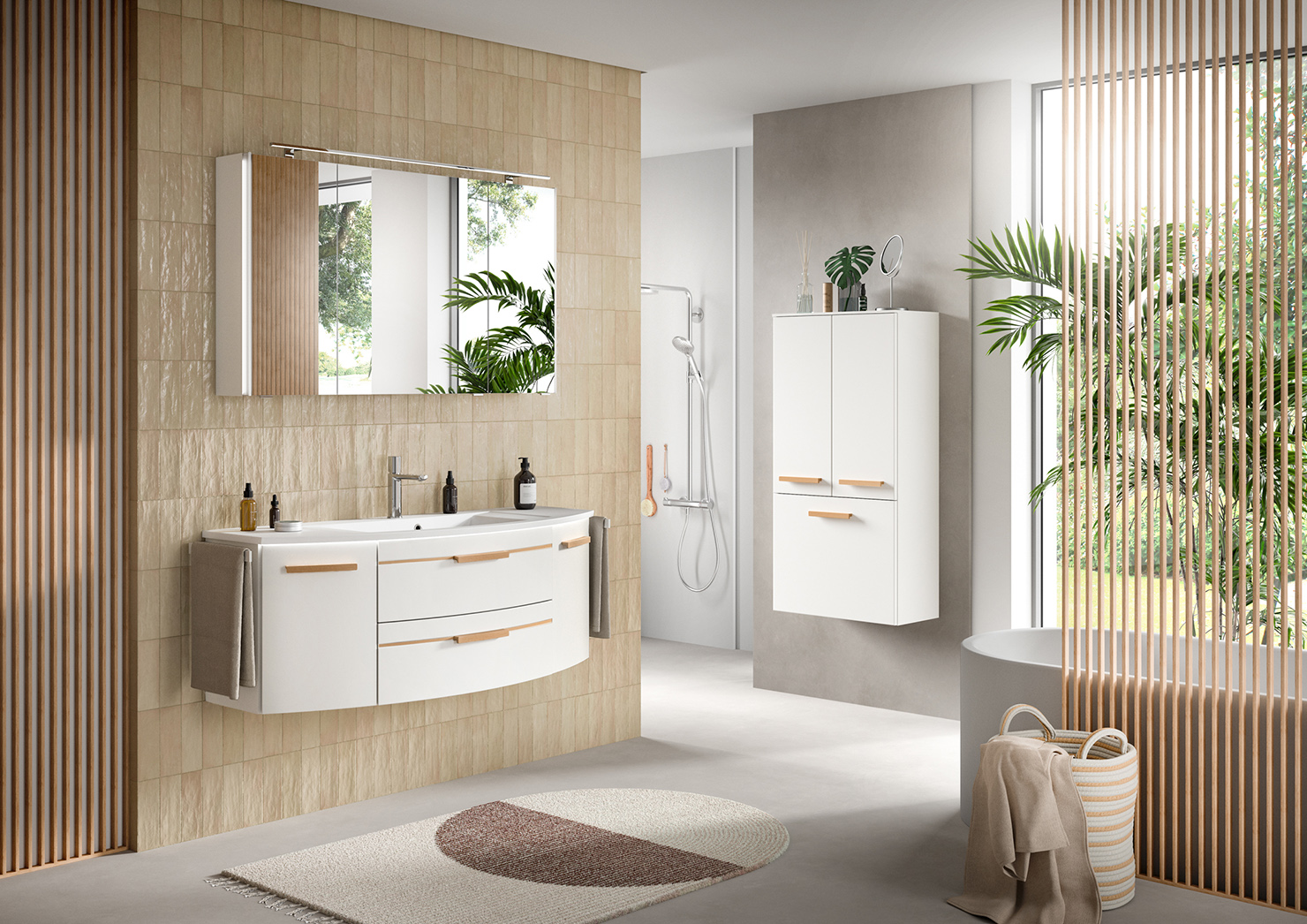 Ob elegant oder wild – mit den richtigen Pflanzen wird das Badezimmer zur grünen Wohlfühloase. In Kombination mit der Serie 7045 von Pelipal entsteht ein harmonisches Gesamtbild, das Natürlichkeit mit stilvollem Design verbindet.